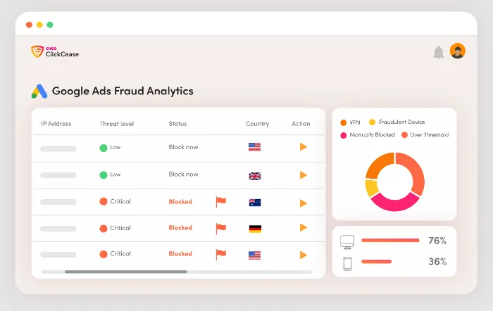 Clickcease uses advanced algorithms to detect and prevent click fraud. The software analyzes a wide range of data points, including IP addresses, user agents, device types, and more. Clickcease also uses machine learning to continuously improve its fraud detection capabilities.